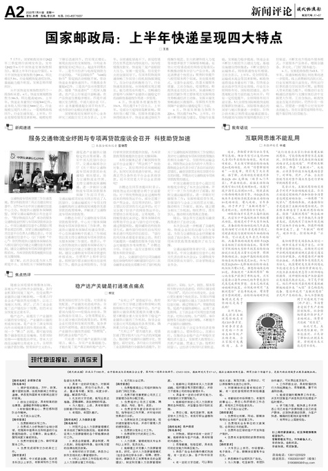 □王思 7月7日,国家邮政局举行2022年三季度例行新闻发布会,发布《2022年6月中国快递发展指数报告》,解...
