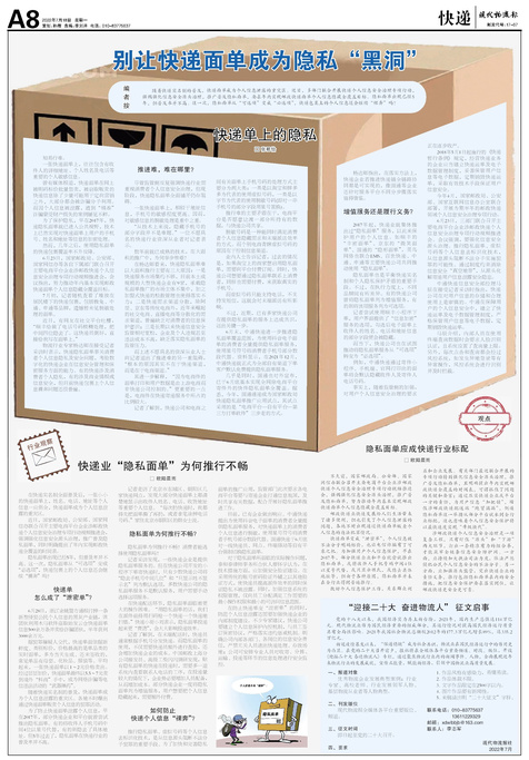 编者按 随着快递实名制的普及,快递面单成为个人信息泄露的重灾区。近日,多部门联合开展快递个人信息安...