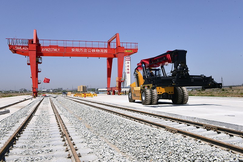 “安阳枢纽规划的5条铁路专用线已全部建成通车,不仅对接瓦日铁路实现了与日照港、烟台港、天津港、连云港等港口通关,依托海上航线开行海铁联运,建立了海上丝绸之路物流大通道;还通过对接京广线与陇海线融会贯通,与国家‘一带一路’建设物流大通道成功接轨,向西联通中亚、欧洲,向东沟通亚太环线,建立了陆上丝绸之路物流大通道。”万庄安阳物流园执行董事赵一博向记者介绍道。
