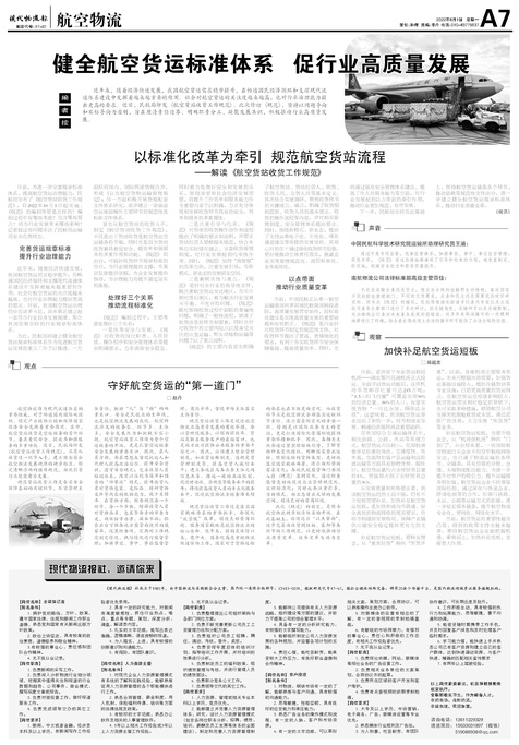 □赵丹 航空物流作为现代流通体系的重要组成,对于畅通国内国际双循环、稳定产业链供应链和保障国家经济...