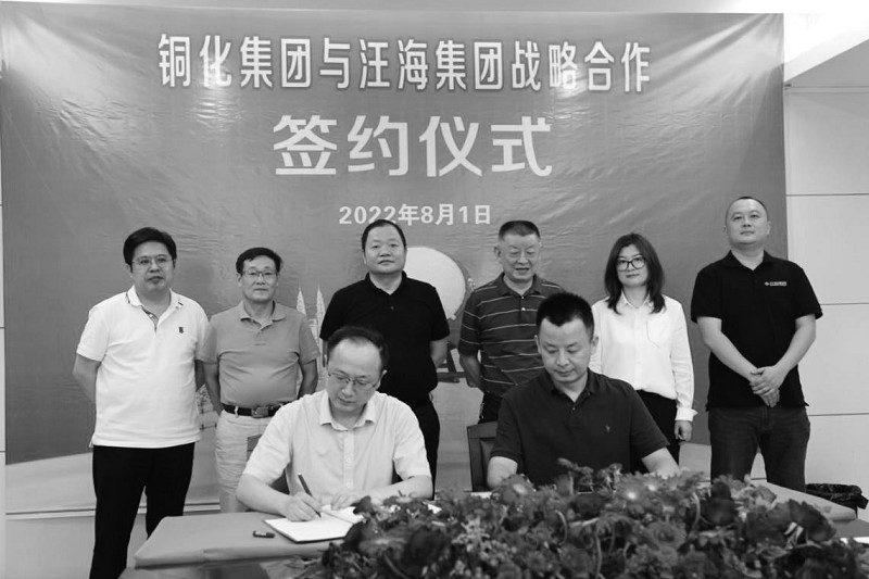 本报讯(通讯员陈源贵)8月1日,铜化集团与汪海集团战略合作框架协议在铜化集团总部签署。汪海集团董事长汪根海、总经理汪伟、财务总监汪红、副总经理毛晓勇及所属相关企业主要负责人,铜化集团总经理徐均生、常务副总经理吴亚、副总经理江峰及旗下华兴化工公司、铜化国贸集团公司负责人参加签约仪式。徐均生、汪根海分别致辞,吴亚主持仪式。