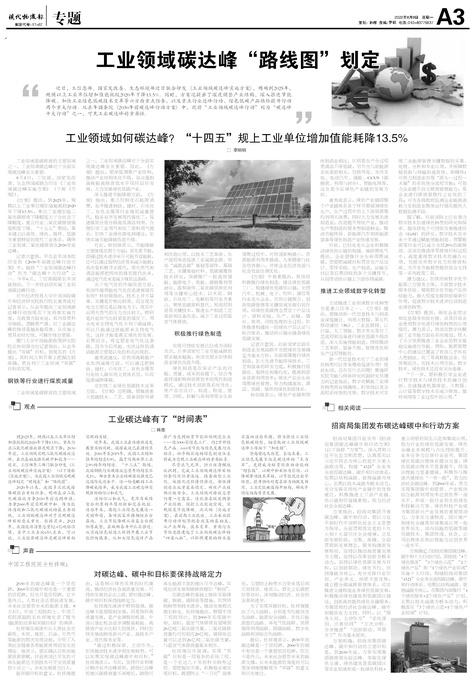 ■ 工业领域如何碳达峰?“十四五”规上工业单位增加值能耗降13.5%