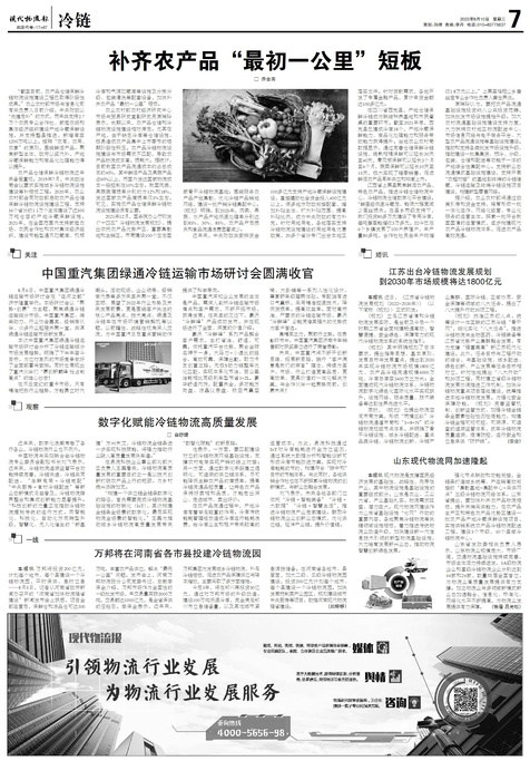 本报讯近日,《江苏省冷链物流发展规划(2022-2030年)》 (以下简称《规划》)正式印发。《规划》立足江苏...