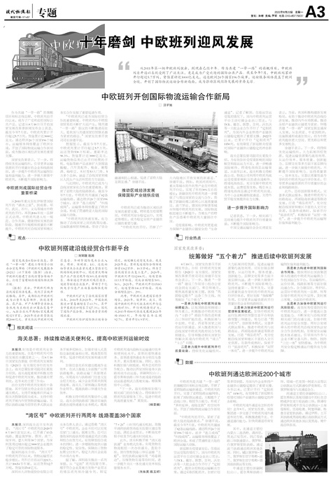 中欧班列是共建“一带一路”的旗舰项目和标志性品牌,开辟了亚欧陆路运输新通道。中欧班列的开行,完善了亚欧...