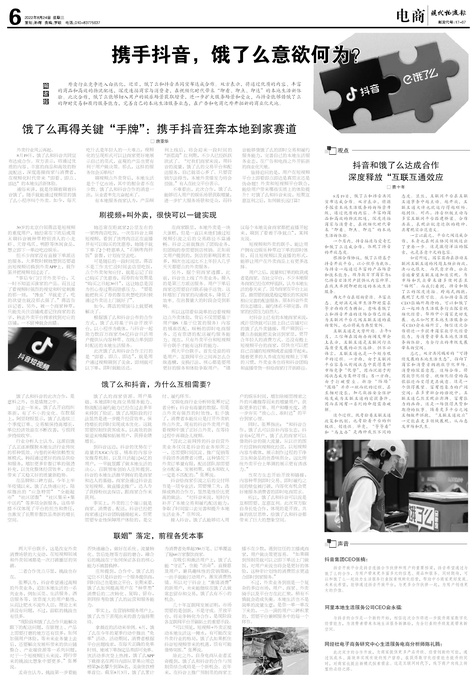 ■ 抖音和饿了么达成合作深度释放“互联互通效应