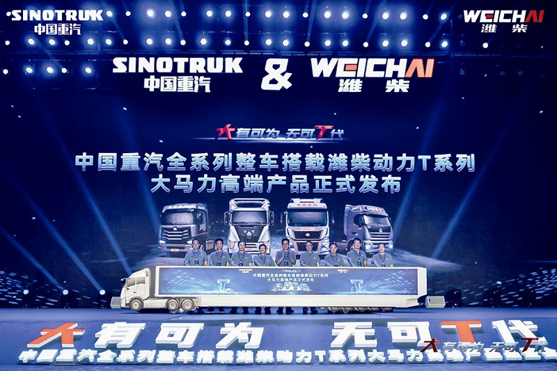 8月22日,以“大有可为,无可T代”为主题的中国重汽全系列整车搭载潍柴动力T系列大马力高端产品品鉴会在济南举行,会上中国重汽推出多款搭载潍柴T系列大马力发动机的高端产品。中国重汽与潍柴动力的强强联合再次走向深入。