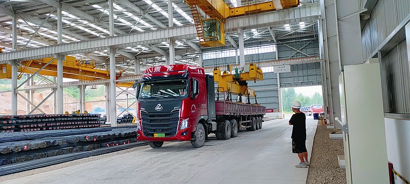 此时此刻的“智能仓”里,如果不是我们的到访,就只有天车司机和货车司机。在这里,没有传统市场上装卸货的工作人员的高喊声,没有人工从成捆螺纹钢下穿钢丝绳辅助吊装的操作风险……