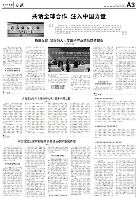 □缴翼飞 9月19日~20日,产业链供应链韧性与稳定国际论坛在浙江省杭州市召开,主题为“同舟共济,共克时艰...