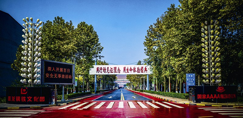 步入厂区,门前最显眼的是国家AAAA级旅游景区和世界500强的醒目标志。而映入眼帘的是一片片绿油油的草地,林立的装置旁、道路边,绿树成荫,蓝天、白云、绿树、流水,相互辉映,鸟儿们在草地上、树梢上,或行或飞或停,悠闲自在。高耸入云的烟囱,气势壮观的炼钢炉,一块块生机盎然的标语牌,道路干净看不见尘土,地面整洁看不到落叶,柔美与硬朗、色彩与灰调,流水潺潺,鸟语花香,融蓝天白云于一框,茵茵绿草地和气势恢宏的厂门、办公楼和谐相映……真没想到一个厂区风光如此之美,置身其中令人心旷神怡,也很难想象这是一个正在生产的钢铁企业,引领着“工业+旅游”的新风尚。