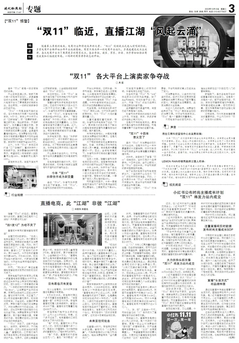 □宋晓华田墨池 随着“双11”的临近,直播电商大战在即。直播江湖还是那个江湖吗?未来要往何处去?“拍1发1...