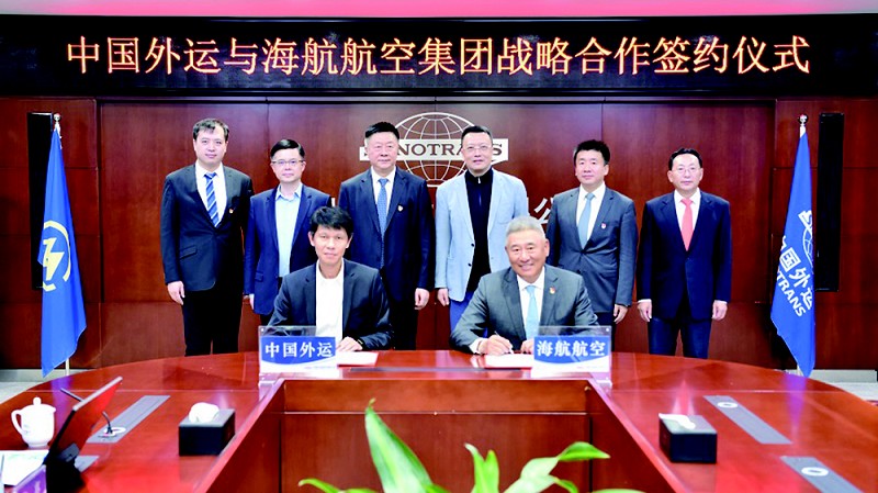 本报讯10月11日,中国外运股份有限公司与海航航空集团有限公司签署战略合作框架协议。海航航空集团副总裁、首都航空董事长谢锐,海航航空集团副总裁胡明波,中国外运党委书记、总经理宋嵘,中国外运副总经理、董事会秘书李世础,中国外运副总经理、首席数字官高翔等出席签约仪式。