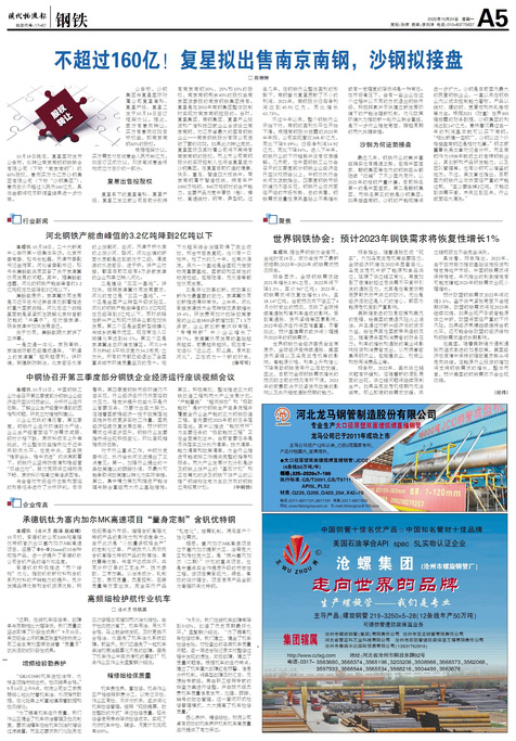 ■ 不超过160亿!复星拟出售南京南钢,沙钢拟接盘