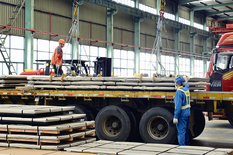 本报讯 (通讯员杨木军摄影报道)10月以来,作为国内重要的不锈钢加工贸易基地——无锡市锡山区,120多家规上企业外拓销售市场,内抓生产运行,企业开足马力,保质稳量,及时交付海内外市场用户,冲刺四季度运营目标。 图为10月24日,江苏省无锡市锡山区,江苏大明工业科技集团有限公司车间一线员工在加工、发运某国际知名手机品牌的不锈钢产品。