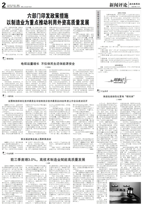 ■ 六部门印发政策措施以制造业为重点推动利用外资高质量发展