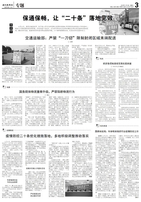 □ 特约评论员田治江 11月13日,国家邮政局印发通知,要求进一步优化措施科学精准做好行业疫情防控工作,...