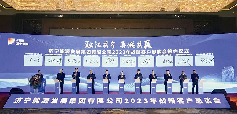 本报讯融汇共享,真诚共赢。2022年12月29日,济宁能源发展集团有限公司2023年战略客户恳谈会在济宁举行。据悉,济宁能源共与313家客户签订战略合作协议,合同量总计7050.34万吨,签订合同额超766亿元,再创历史新高。这标志着济宁能源将协同各方共同推进内河航运建设,携手构建上下游贸易发展新格局。