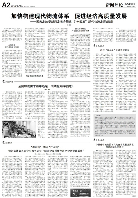 □潘洁 现代物流是经济的“经脉”,一头连着生产、一头连着消费。国务院办公厅日前印发《“十四五”现代物流...