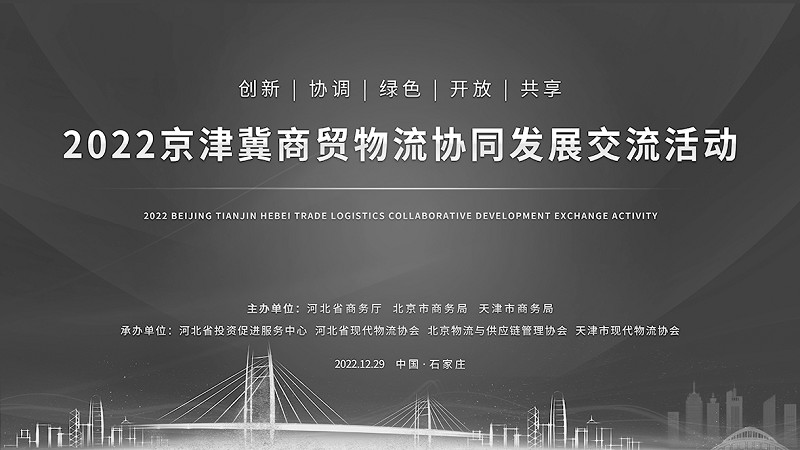 2022年12月29日,2022京津冀商贸物流协同发展交流活动在石家庄举行。本次活动以“创新·协调·绿色·开放·共享”为主题,采取线上线下相结合方式举行,业内专家、学者,(商)协会、国家和省内部分知名企业代表等150余人参加本次论坛。中国物流与采购联合会副会长、中国物流学会秘书长贺登才、河北省商务厅副厅长徐彦平、北京市商务局副局长李燕凌、天津市商务局副局长李健分别在讲坛上致辞。河北省现代物流协会会长肖明建,北京物流与供应链管理协会、天津市现代物流协会相关领导出席会议。中国物流与采购联合会副会长、中国物流学会专家委员会主任蔡进,河北省社会科学院研究员李义生,河北省物流产业集团有限公司企业管理部部长刘章文应邀出席并做主题演讲。