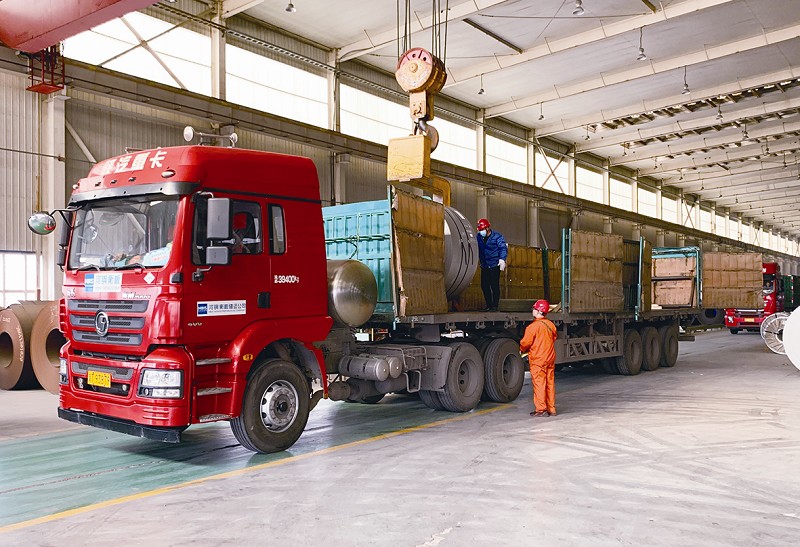 本报讯 (通讯员刘玉红 王凯毅 摄影报道)今年以来,河钢衡板储运公司积极调整运输结构,全方位优化厂外库仓储业务,推动传统运输企业向现代化多样化的物流企业转型,大幅提高车辆的利用率和货物满载率,努力打造精准高效的仓储品牌。元月份,该公司下站量同比增加19.31%。 图为2月1日,河钢衡板储运公司车辆正在库房装载酸洗料。