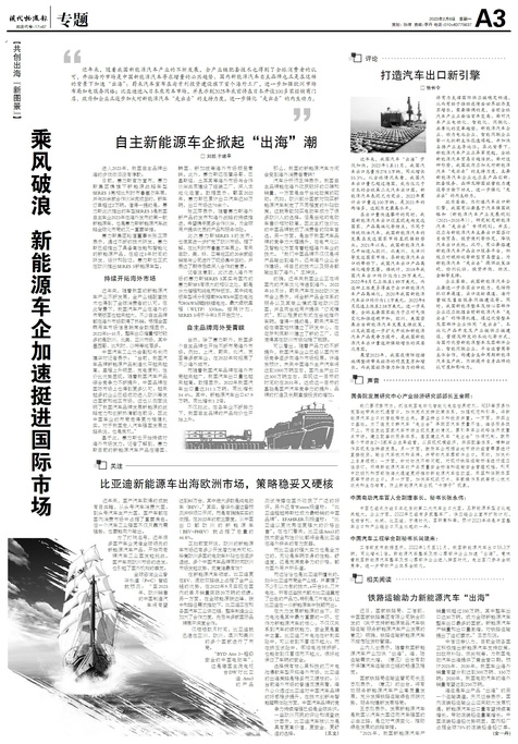 □张长令 近年来,我国汽车“出海”步伐加快。2022年1至11月,我国汽车出口总量为278.5万辆,同比增长55.3%...