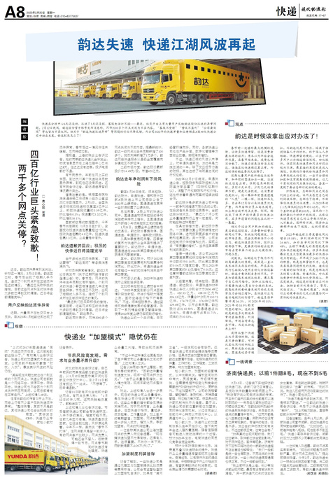 “上次的2017年圆通速递‘倒闭’风波还历历在目,这次就轮到韵达股份了。”有知情人士告诉记者,快递公司的加盟...