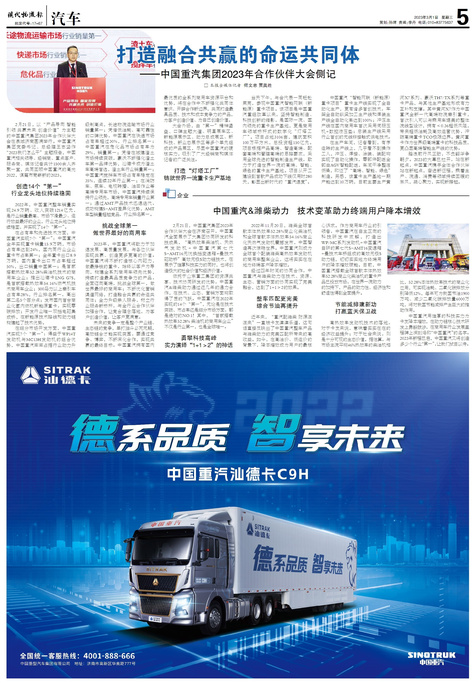 2月21日,中国重汽集团2023年合作伙伴大会在济南召开,中国重汽全面展示了大集团协同研发的科技成果,“高热...