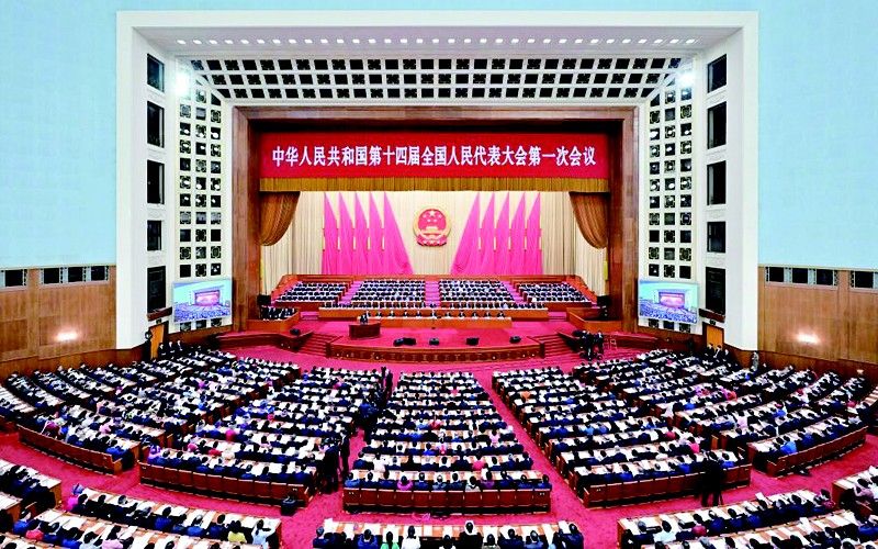 本报讯 (记者何文忠) 十四届全国人大一次会议3月5日9时在人民大会堂举行,近3000名新一届人大代表肩负人民重托出席盛会。习近平等党和国家领导人在主席台前就坐。大会主席团常务主席、执行主席赵乐际主持大会。