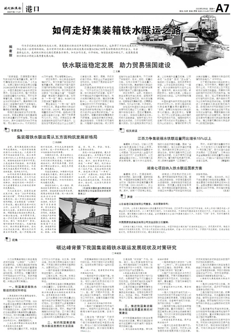 □林成功 大力发展集装箱铁水联运是推进货物运输“公转铁”“公转水”的主要手段,也是交通运输领域推进碳达...