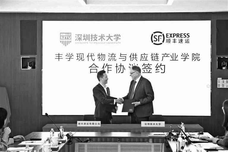 本报讯近日,深圳技术大学举行签约仪式,与顺丰速运有限公司就共同组建“丰学现代物流与供应链产业学院”(下称“丰学学院”)签署合作协议,双方基于良好的信任关系,积极推进校企项目合作,推动校园人才培养,实现资源共享、优势互补,打造智慧物流生产性产校融合实训基地项目(下称“实训基地”)合作典范。