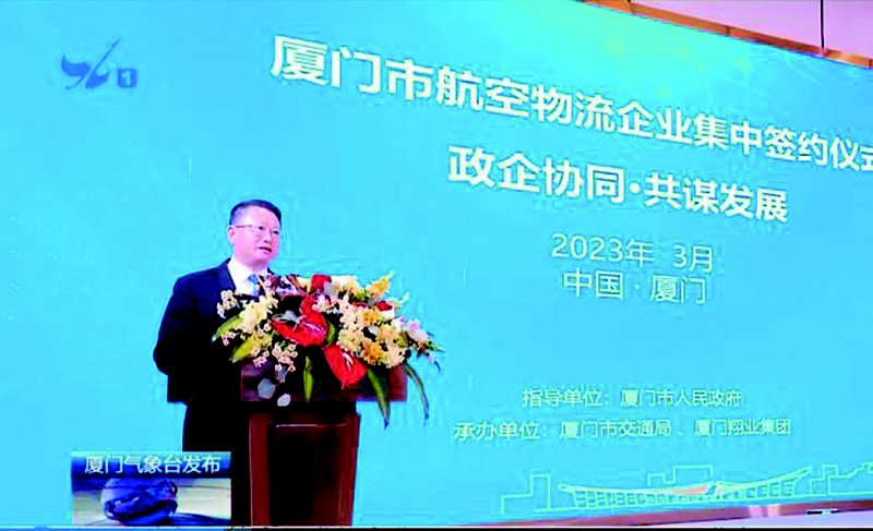 本报讯厦门市航空物流企业3月24日举行集中签约,现场签署合作协议15项。厦门市副市长黄燕添出席并见证签约。