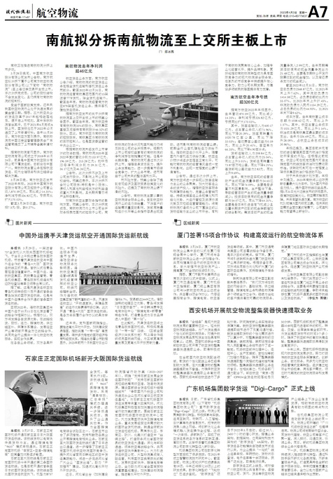 □ 邵冰燕 南航正在推进南航物流分拆上市步伐。 3月28日晚间,中国南方航空股份有限公司发布公告称,...