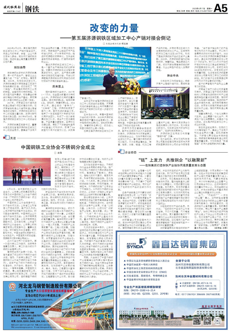 □ 赵萍 4月11日,由中国钢铁工业协会主办、山东泰山钢铁集团有限公司承办的中国钢铁工业协会不锈钢分会...