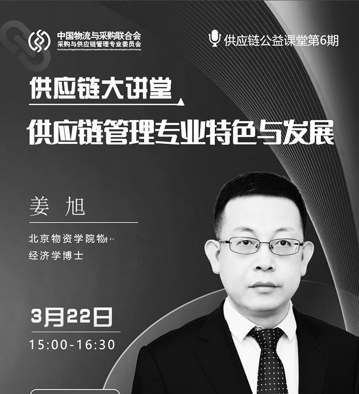 该系列直播活动每周举办一期,下一期直播活动为“供应链大讲堂”,计划于4月26日15时在“中物联采购委”微信公众号进行线上直播。届时将邀请北京物资学院物流学院院长、经济学博士姜旭,围绕供应链发展趋势方向、我国供应链人才培养、供应链管理专业发展等内容进行讲解。