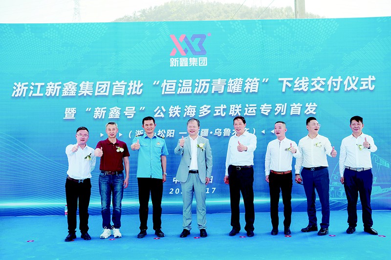 本报讯(通讯员陈菲菲) 4月17日,新鑫集团首批总价值超2000万元,用于沥青储备运输的国际标准箱型“恒温沥青罐箱”,迎来首趟公铁海联运“新鑫号”首发班列。该班列共计50车,载满108个沥青罐式集装箱,承载着客户的信任与嘱托,经衢宁铁路松阳站发出,驶向新疆乌鲁木齐-鄯善物流专用线,象征着驶向灿烂繁荣的未来。