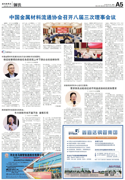 □ 本报实习记者张雨薇 4月19日,兰格钢铁研究中心主任王国清在中国金属材料流通协会八届三次理事会议上...