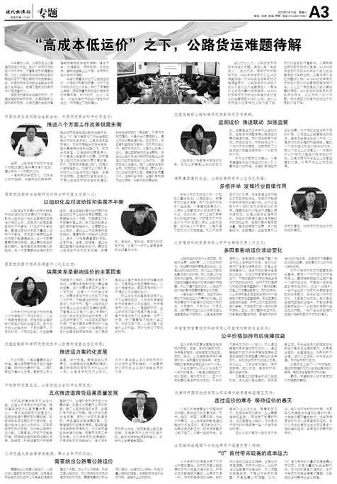 需要跳出公路看公路运价,公路应该从国家的宏观的政策,还有是各种运输方式的这种公平竞争的角度来看这个问...