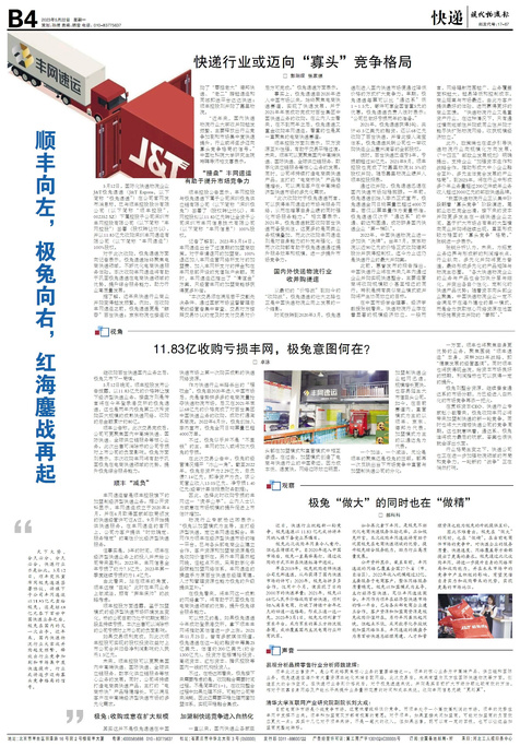 □ 郝科科 近日,快递行业掀起新一轮竞争,极兔速递以11.83 亿元成功将丰网纳入旗下备受业界瞩目。...