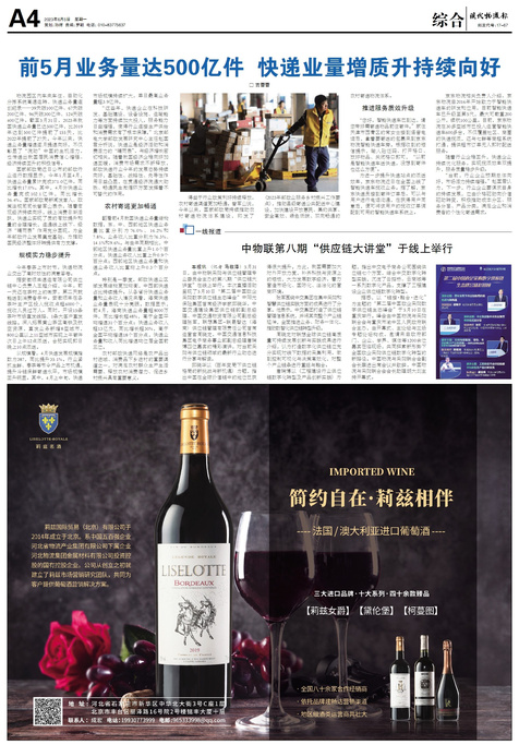本报讯 (记者马敬泽)5月31日,由中物联采购与供应链管理专业委员会主办的第八期“供应链大讲堂”在线上举行...