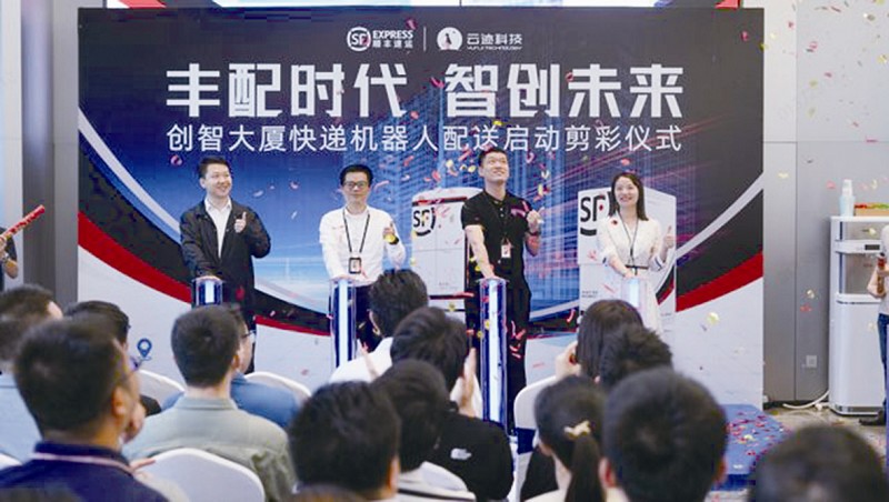 本报讯 6月2日,顺丰速运联合云迹科技在深圳市南山区创智天地大厦举行了一场别开生面的启动剪彩仪式,4台顺丰智能楼宇配送机器人正式在创智天地大厦投入使用,这是顺丰速运在国内投放的首批写字楼配送机器人,标志着CBD正式开启了智能快递服务配送的时代。