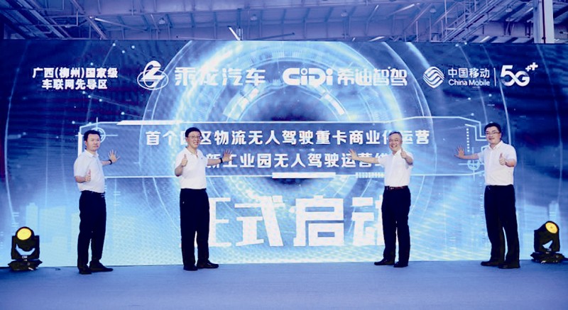 本报讯6月7日,东风柳汽联合自动驾驶生态伙伴希迪智驾(CIDI,长沙智能驾驶研究院)、中国移动广西分公司,共同发布“乘龙领航MAX”智能网联电动物流解决方案。经过一年多研发,正式启动园区物流无人驾驶重卡(无安全员)商业化运营。