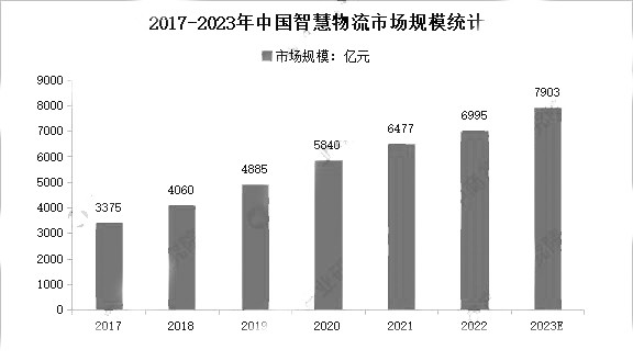 从世界范围来看,仓储物流自动化系统行业的发展主要分为五个阶段,即人工阶段、机械化阶段、自动化阶段、集成自动化阶段和智能自动化阶段。随着第四次工业革命的推进,我国仓储物流自动化系统行业正处在集成自动化向智能自动化发展阶段。在此背景下,我国智慧物流市场快速增长,根据中商产业研究院预测,2023年中国智慧物流市场规模将达7903亿元。