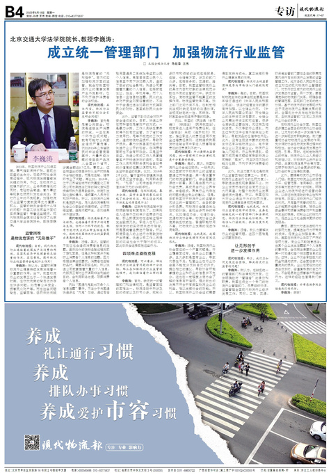 ■ 成立统一管理部门 加强物流行业监管