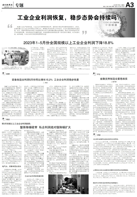 ■ 装备制造业利润5月份同比增长15.2%工业企业利润稳步恢复