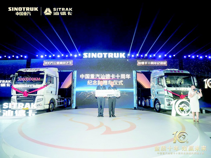 本报讯(记者何文忠实习记者张天阳)7月2日,金质十年效赢未来——中国重汽汕德卡十周年品牌盛典荣耀之夜在山东青岛奥帆中心举办,中国重汽集团党委副书记、常务副总经理王琛,中国物流与采购联合会会长助理、物流装备专业委员会主任马增荣出席并致辞。本次活动线上线下同步进行,来自业内的专家,汕德卡的合作方、供应商、用户以及全国卡友一同领略中国重汽汕德卡品牌的“德系品质”,共同见证汕德卡品牌“高端之最”的王者风范。