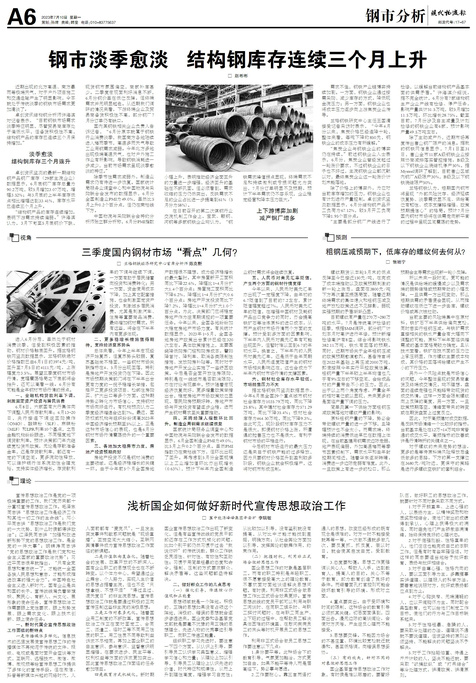 □ 兰格钢铁经济研究中心首席分析师陈克新 进入6月份后,虽然处于钢材消费淡季,但受到积极因素的推动,...