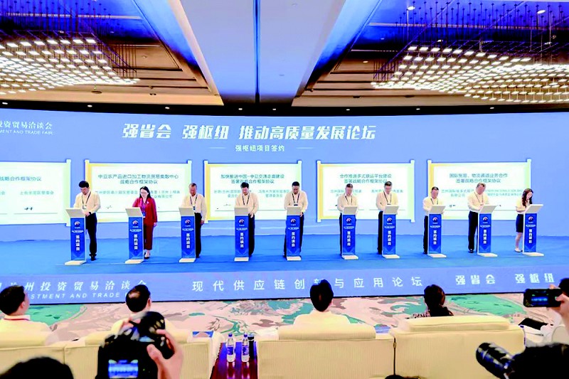论坛期间,兰州新区管委会、甘肃(兰州)国际陆港管委会、益海嘉里(兰州)粮油工业有限公司、乌鲁木齐国际陆港管委会等5家单位举行了强枢纽项目签约仪式。