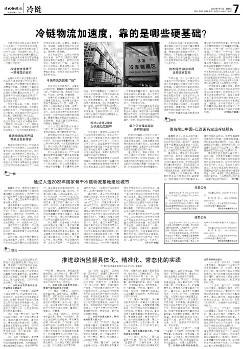 本报讯近日,国家发改委印发《关于做好2023年国家骨干冷链物流基地建设工作的通知》,发布新一批25个国家骨...