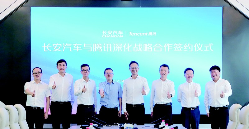 本报讯7月11日,长安汽车与腾讯官宣签署深化战略合作协议。双方表示,将在此前基础之上,围绕智能座舱、导航及地图、自动驾驶、海外生态、企业数字化转型等多领域加强合作,共同推动更高质量的数字化转型。
