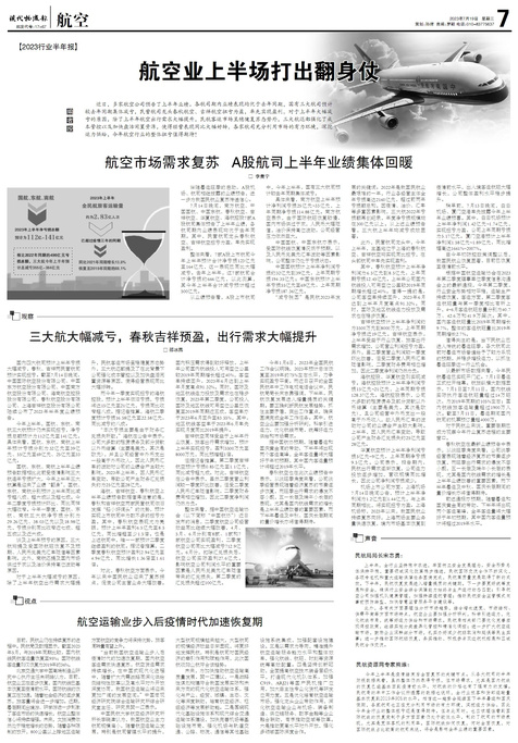 ■ 航空市场需求复苏 A股航司上半年业绩集体回暖