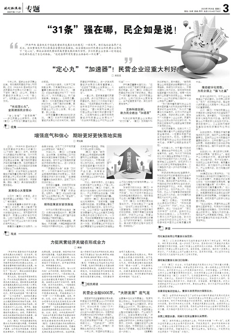 □ 熊丽 《中共中央国务院关于促进民营经济发展壮大的意见》近日发布。这份被社会简称为“促进民营经济31...